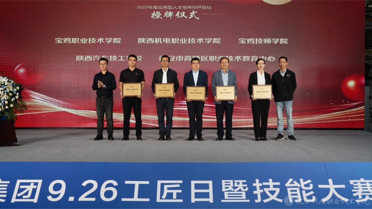 本次活动以“匠星正发光”为主题,汇聚了宝鸡市政府代表、职业院校负责人、行业专家及吉利汽车集团高管,共同推动汽车产业人才生态的共建与升级。陕西机电职业技术学院凭借在校企协同育人方面的卓越成效,被授予“2025年度应用型人才培育标杆院校”荣誉称号。