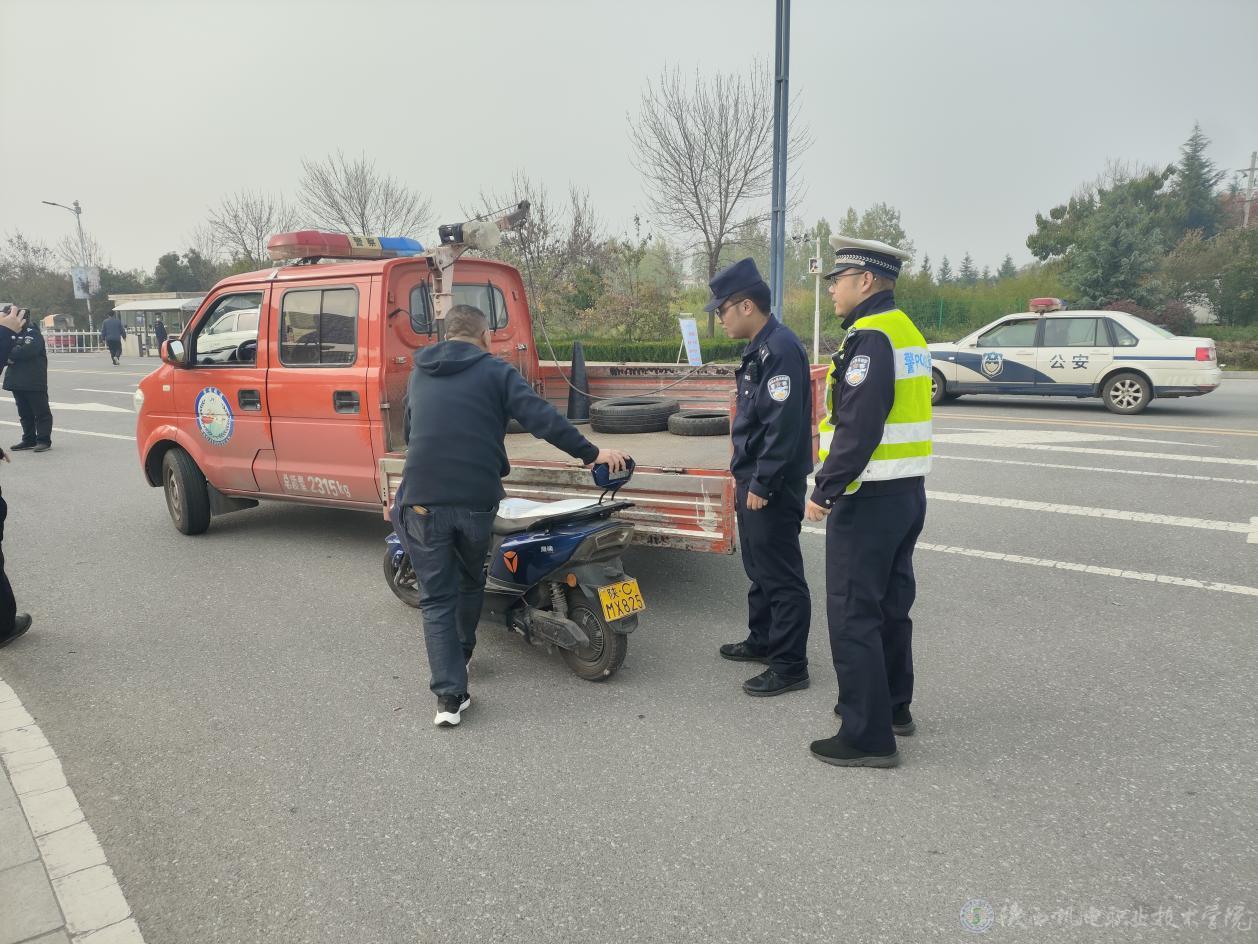 为切实维护校园周边交通秩序,保障师生出行安全,提升广大师生的交通安全意识和自我防护能力,10月29日,陕西机电职业技术学院联合宝鸡市公安局交通警察支队金台大队、宝鸡市公安局金台分局蟠龙派出所,共同开展了校园周边机动车安全专项排查整治行动,并同步举办了一场内容详实、形式生动的交通安全知识讲座。