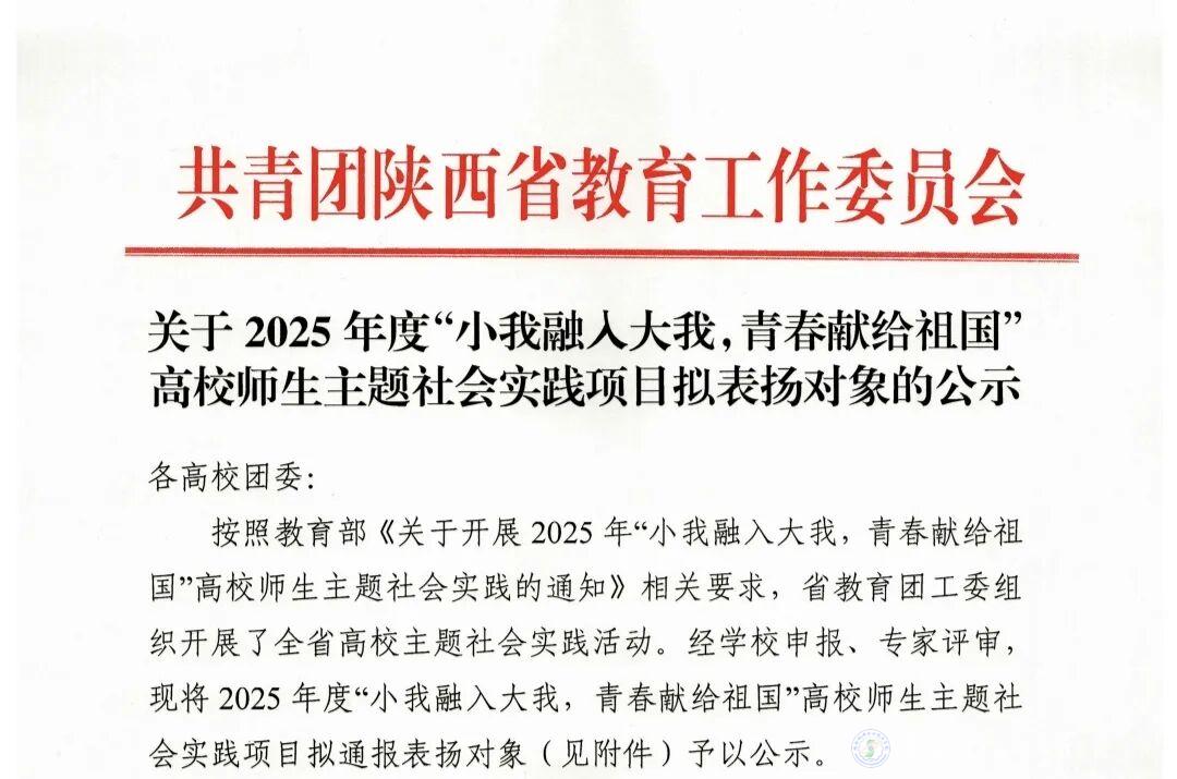 近日,共青团陕西省教育工作委员会发布《关于2025年度“小我融入大我,青春献给祖国”高校师生主题社会实践项目拟表扬对象的公示》。陕西机电职业技术学院凭借扎实的实践成果脱颖而出,“家电维修”社会实践团成功获评“优秀团队”;“科技助老,智援银龄”成功获评“优秀项目” 称号。