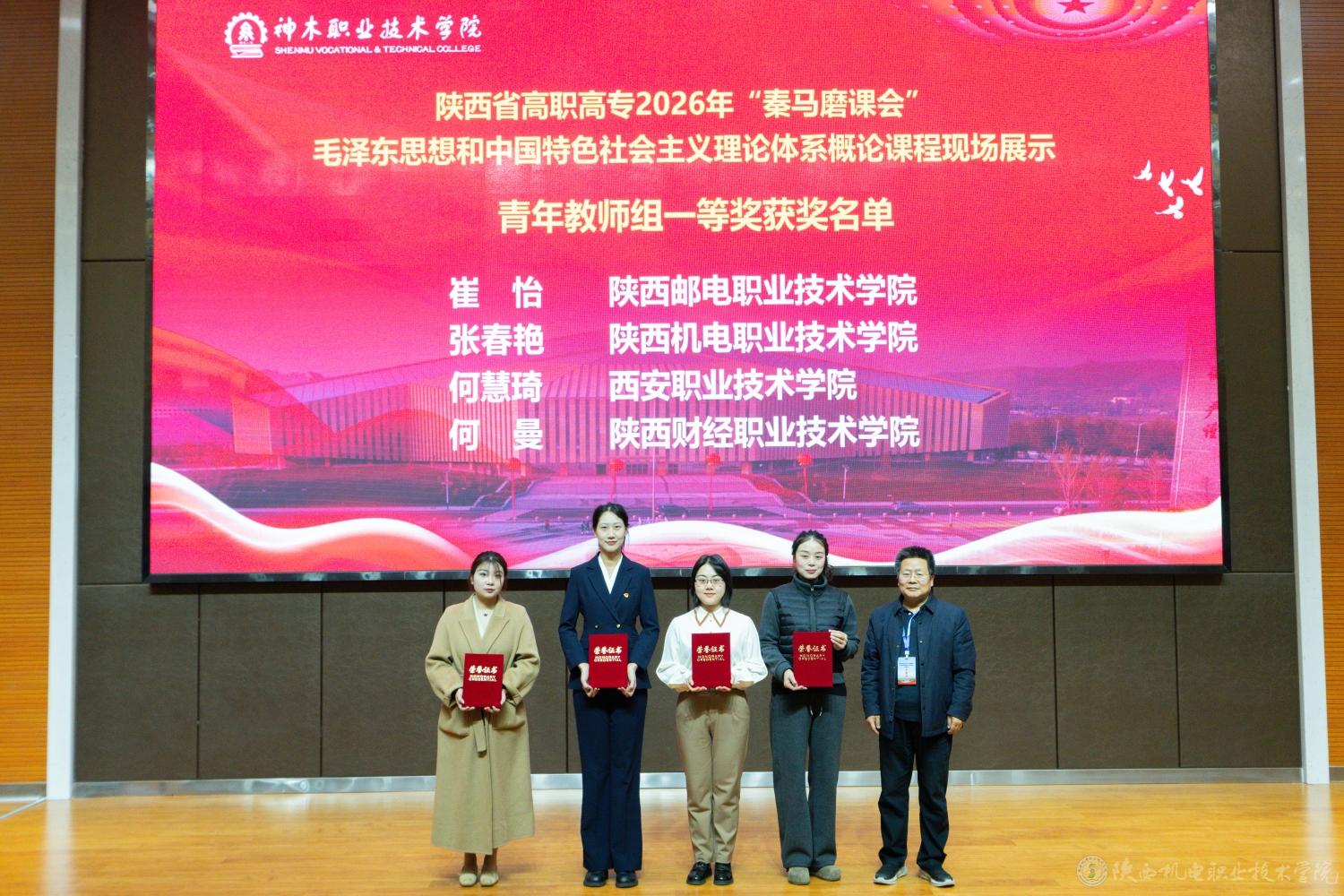 为深入贯彻习近平总书记在学校思想政治理论课教师座谈会上的重要讲话精神,落实习近平总书记对学校思政课建设作出的重要指示精神,3月20日,陕西高职高专2026年“秦马磨课会”毛泽东思想和中国特色社会主义理论体系概论课程现场教学展示在神木职业技术学院举行。陕西机电职业技术学院思政课教师张春艳在现场展示环节荣获“青年教师组”一等奖。我校马克思主义学院负责人王康、青年教师代表屈婉蓉参加此次活动。张春艳(中)荣获...