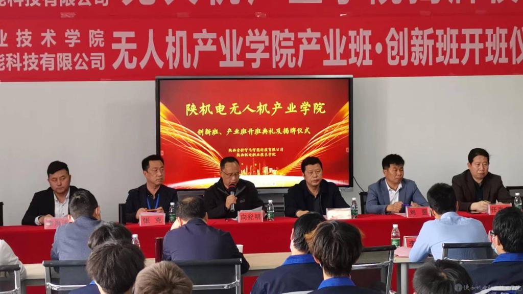 2022年4月21日,我校在蟠龙校区举行陕机电职院-陕西壹控智飞产业学院揭牌及开班典礼。宝鸡市蟠龙新区管委会主任唐军科、副主任任海龙、招商局副局长李俊,陕西壹控智飞智能科技有限公司董事长刘罡、总经理李海涛、行政总监马琳、教学主管李超康出席会议。陕西机电职业技术学院党委副书记、校长向纪明,党委委员、副校长张克以及党委宣传部、招就处、校企合作处、汽车工程学院、智能制造学院等部门负责人、专业教师代表和学生代表,宝鸡电视台、宝鸡广播电台、宝鸡日报、宝鸡新闻网等媒体列席此次会议,会议由汽车工程学院院长李靖主持。