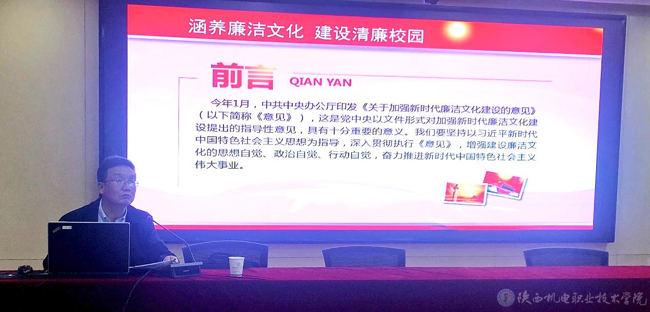 2022年5月13日下午,在宝福路校区视频会议室,党委副书记、纪委书记齐晓军以《涵养廉洁文化建设清廉校园》为主题,为全校中层以上领导干部讲授了一堂专题廉洁党课。