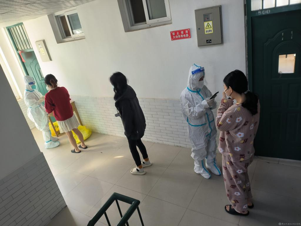 为筑牢疫情防控屏障,保障全校师生安全,营造安全无风险的学习、工作环境,按照学院防疫要求全校师生和第三方人员每天进行全员核酸检测。在核酸检测现场,大家有序排队,做到了间隔一米,戴好口罩,有序检测,共同筑起了一道防疫安全线。