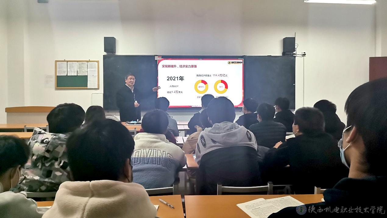 11月24日下午,学院党委副书记、纪委书记齐晓军在博学楼315教室为22机电技术2班40余名学生上形势与政策课,讲授《新时代全面从严治党的伟大实践》和《伟大时代的历史跨越》两个专题内容。