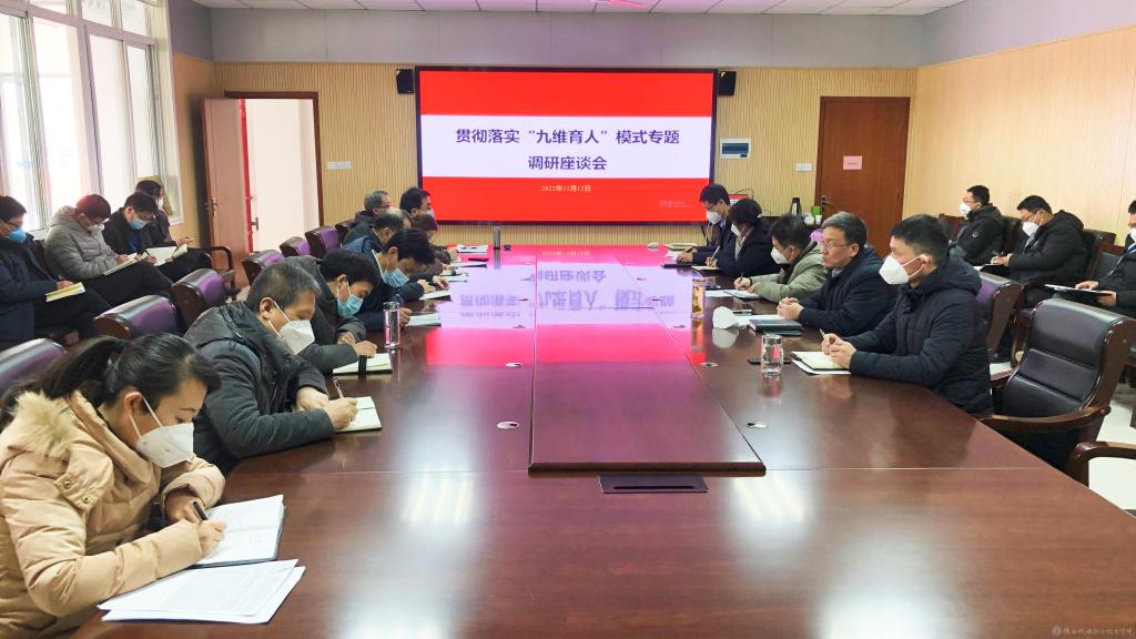 就全面深化落实“九维育人”模式,齐晓军提出了三点要求:一是提高思想认识。要围绕立德树人根本任务,充分认识全面深化落实“九维育人”模式的重要意义,切实把思想和行动统一到学校党委的部署要求上来,高度重视并扎实推动“九维育人”工作。二是完善工作机制。要以今天的交流座谈为契机,总结经验方法,查找自身不足,细化完善各部门协作配合机制,开展“九维育人”理论研究、成果转化、创新工作,努力形成工作合力,进一步推动“九维育人”工作落实落细。三是强化督促落实。要围绕实施方案,对照实施指标体系,制定具体实施细则,拿出具体实施项目,明确实施途径和办法,及时督促落实,确保“九维育人”模式落地生根、务求实效。
