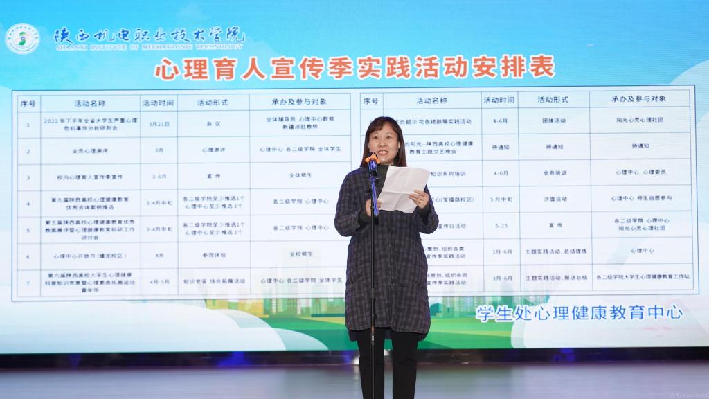 我校2023年“阳光护航”心理育人宣传季实践活动启动仪式于4月4日下午在蟠龙校区大学生活动中心举行,学校党委副书记张琴、电子与信息学院党支部书记高赋、学生处心理健康教育中心专兼职教师、各二级学院学工办主任、专职辅导员、阳光心灵心理社团成员、各班心理委员等200余人参加,仪式由党委学工部部长、学生处处长王建斌主持。