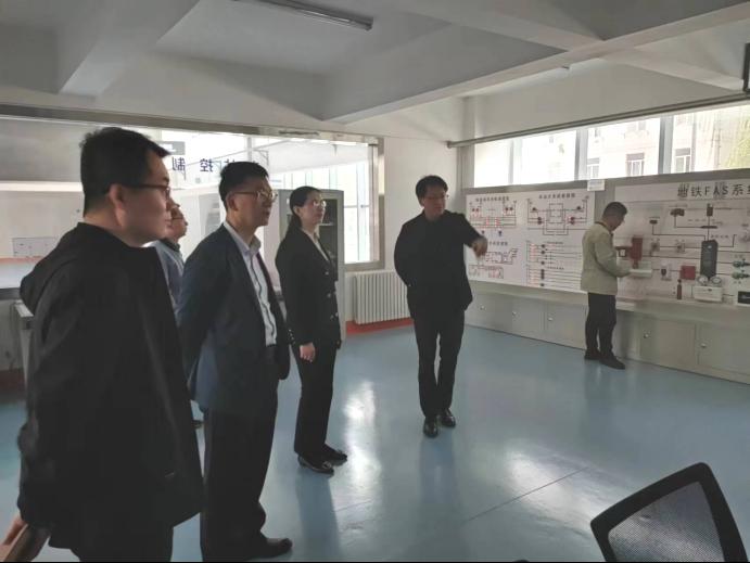 在宝鸡铁路技师学院党政办主任叶云飞的带领下,张书记一行先后参观了机车专业实习基地、轨道交通仿真实训中心、国家级高级技能人才培训基地、城市轨道交通实训基地等。