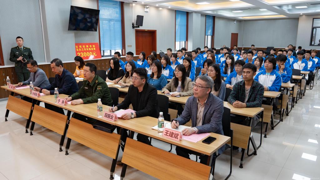 仪式上,张琴代表学校致欢迎辞,并介绍了我校近年来征兵工作开展情况和“优质兵员储备基地”后期建设工作设想;魏海峰宣读了省征兵办、省教育厅、省人社厅关于批准设立“优质兵员储备基地”的批复;杨红升与伊逊智为学校“优质兵员储备基地”揭牌;四所院校领取了2022年高校征兵工作补助经费。