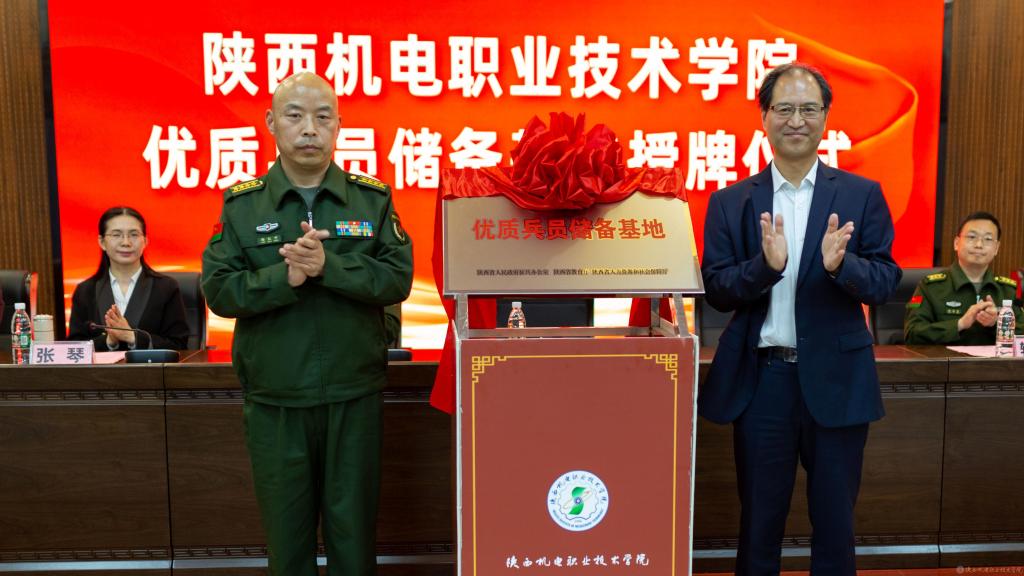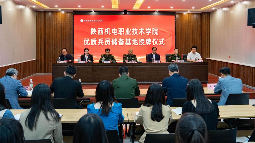 2023年4月18日下午,陕西机电职业技术学院在蟠龙校区博学楼111室举办了“优质兵员储备基地”授牌仪式。