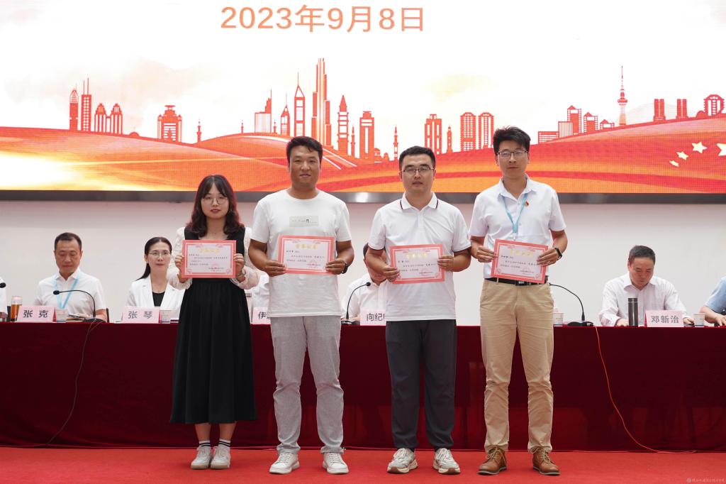 副院长张新堂宣读2023年“双师素质教师”认定结果,2022年度黄大年式教师团队先进事迹学习“先进个人”以及2023年度辅导员素质能力大赛表彰文件并颁奖。