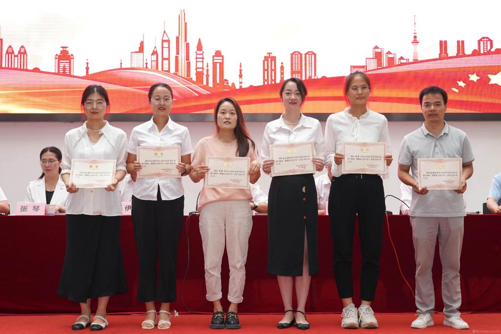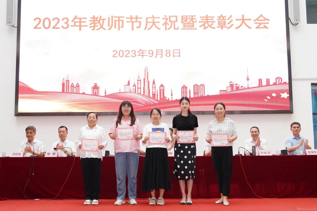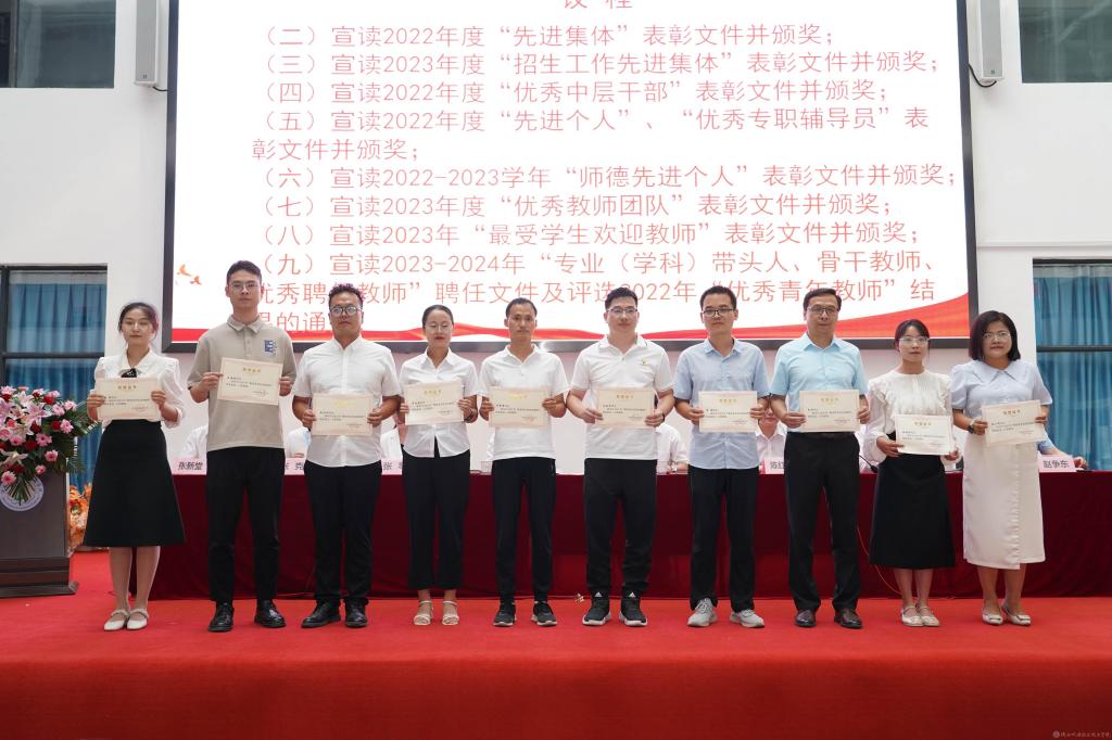 党委委员、副院长张克宣读2023年度“优秀教学团队”,2023年“最受学生欢迎的教师”表彰文件;宣读2023-2024年“专业(学科)带头人”“骨干教师”“优秀聘任教师”及评选2022年“优秀青年教师”结果的通知并颁奖。