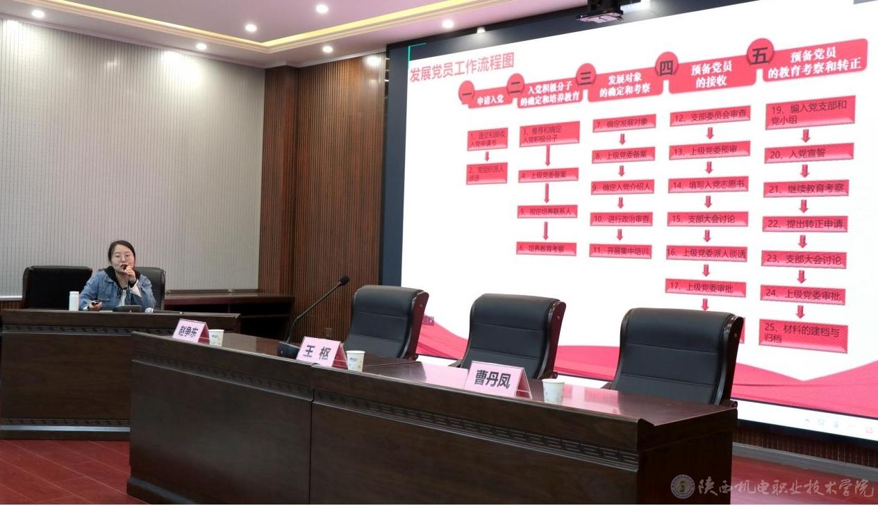 为进一步做好入党启蒙教育,激发大学生要求入党的热情,2023年9月25日,学校党委组织部、校团委组织开展在大学生中发展党员政策宣讲会,宣讲会在蟠龙校区111室和宝福路校区汽车机电大楼四楼会议室同时举行。党委委员、院长助理、组织部部长赵争东,校团委书记王枢,各二级学院团总支书记、辅导员代表,各班团支书参加会议,会议由党委组织部综合科科长张玉琼主持。